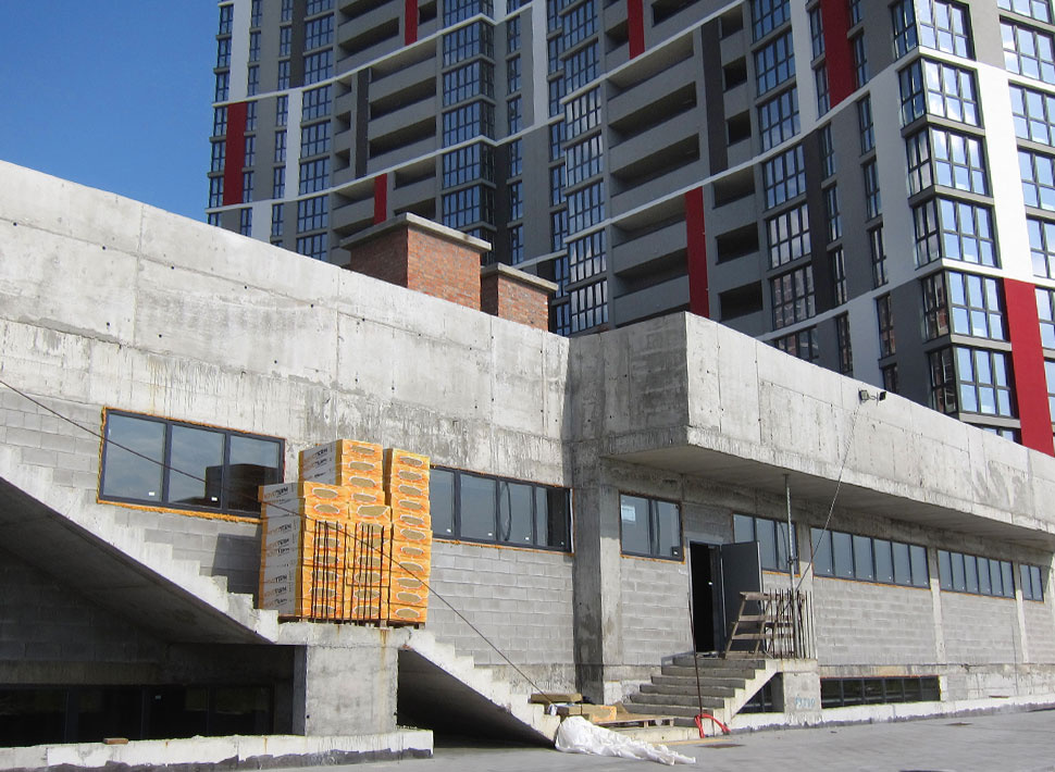 ![]() | Підпірні стіни — монолітні бетонні. Каркас: колони, пілони — монолітні залізобетонні. Перекриття — безригельні монолітні залізобетонні. Шахти ліфтів — монолітні залізобетонні. |